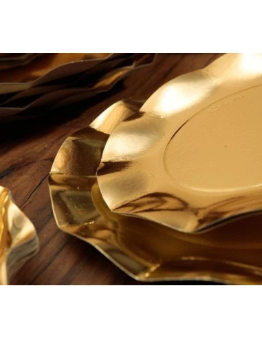 Pour une décoration chic de baby shower, baptême, mariage ou anniversaire, ces assiettes couleur or brillant avec le bord en forme de pétale.