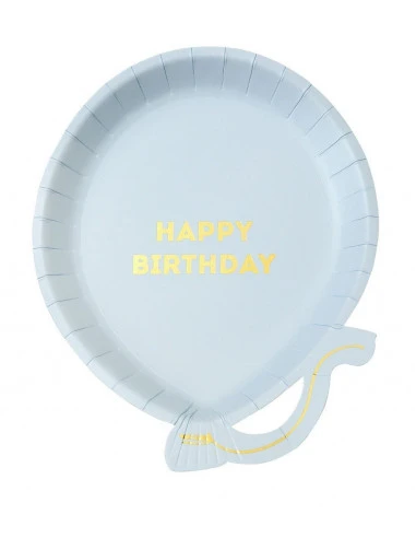 Pour la décoration de votre table de premier anniversaire et anniversaire pastel, ces assiettes en forme de ballons avec écriture « Happy Birthday » .