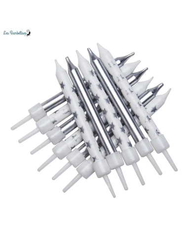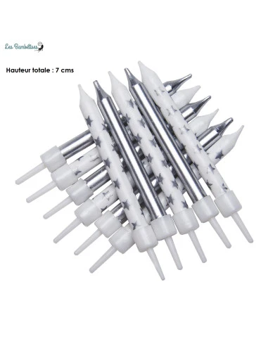 Pour une belle décoration d’un gateau d’anniversaire, ajoutez ces 12 bougies argent avec des étoiles .