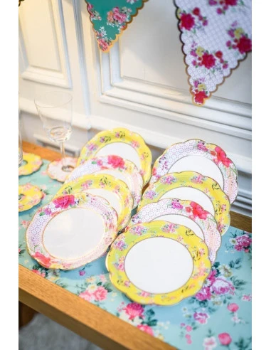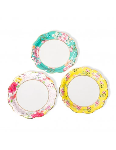 Pour la décoration de votre fête liberty, ces petites assiettes imprimées liberty avec contour doré et centre blanc.