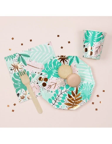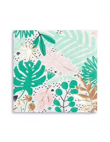 Pour la décoration de votre table de fête tropicale, ces serviettes avec feuilles de palmiers et touche dorée brillante.