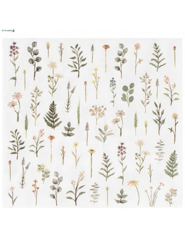Matière : papier blanc imprimé de fleurs vertes et beiges