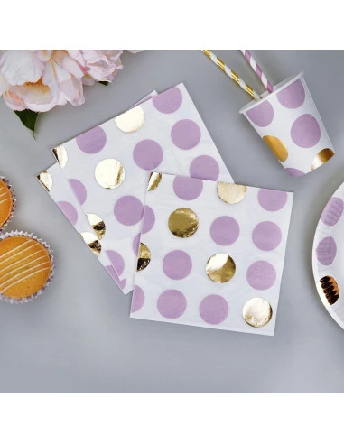 Pour votre décoration de fête anniversaire, de baby shower ou de baptême, ces serviettes avec de grands pois parmes et dorés .