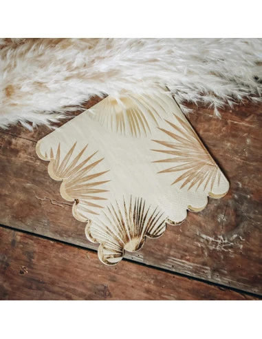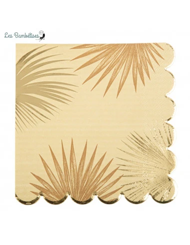 Ces 16 Serviettes Tropicales Bohème sont parfaites pour une déco de fête Jungle tropical avec des feuilles de palmiers dorées .