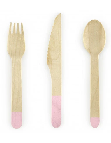 Ces couverts sont de couleur bois clair et peints sur le manche avec une peinture rose pastel.