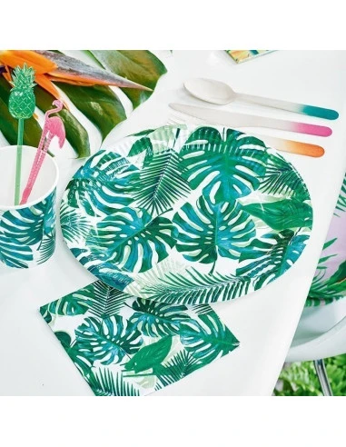 Pour votre déco de table tropicale, ces petites serviettes imprimées de feuilles de palmiers.