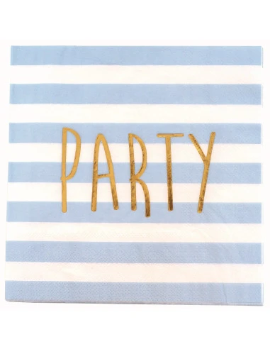 Associez les serviettes rayures rose pastel party doré pour réaliser une déco de fête Jumeau fille et garçon.