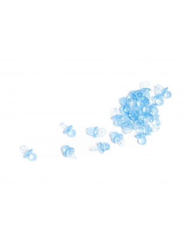 Pour la décoration de votre table baby shower, baptême, anniversaire ou pour décorer une pochette cadeaux, une bouteille de candy bar, ces mini tétines bleu ciel.