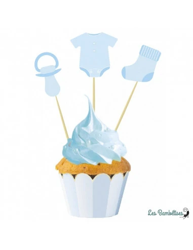 Ces 3 Cake Toppers Baby Shower Garçon sont plus grand que les piques gateaux Baby Shower de la même collection .