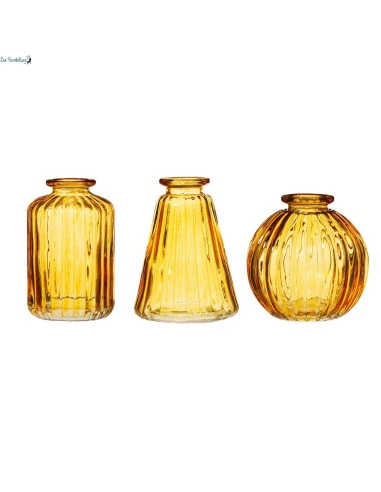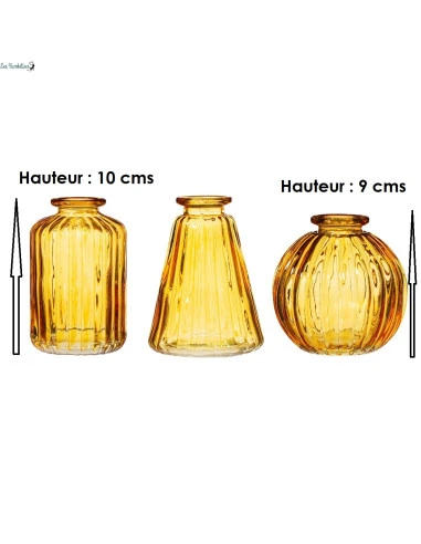 Si vous recherchez des idées pour un centre de table lumineux, ajoutez ces 3 petits vases en verre jaune.