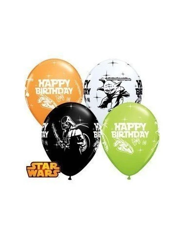 4 ballons Happy Birthday Star wars en latex . Hauteur : 28cms gonflés .