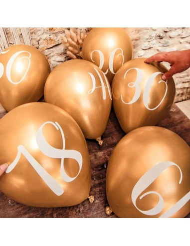 Composez un bouquet de ballons avec ces 5 ballons chiffre 18 dorés seuls ou avec notre kit ballon chiffre 18 géant or 86 cms.