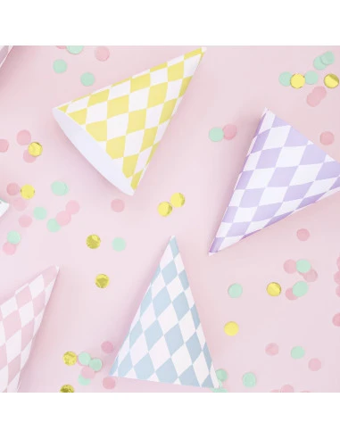 Avec leurs couleurs de bonbons acidulés, ces chapeaux pointus seront parfaits pour décorer votre coin enfant avec Candy Bar.