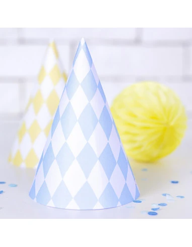 – 2 chapeaux pointus losanges bleu ciel et blanc
