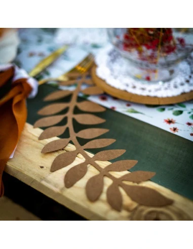 Placez ces feuilles en carton sur une table avec un chemin de table en jute ou doré pour lui donner du relief.