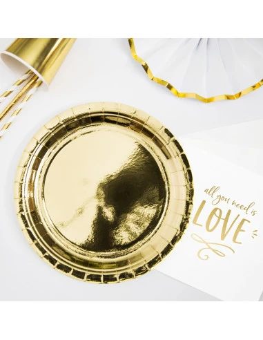 La couleur dorée est la couleur phare des fêtes de fin d’année: grâce à ces assiettes dorées votre table de Noêl ou de nouvel an sera élégante avec des accessoires noirs ou marines.