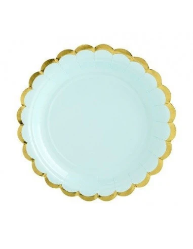 6 Petites Assiettes Vert Pastel Bordure Dorée 18cms