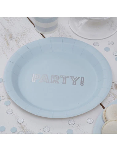 Pour une décoration de fête anniversaire, de baby shower, de baptême ou d’anniversaire, ces assiettes fond bleu ciel que vous pourrez également mélanger avec des motifs imprimés .