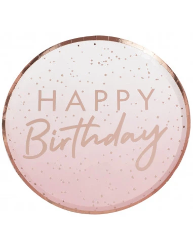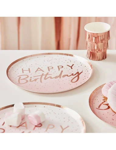 Avec leur écriture stylisée, ces assiettes conviennent pour un anniversaire 18 ans, 30 ans, 40 ans … avec les gobelets ombrés assortis ou des gobelets unis rose gold.