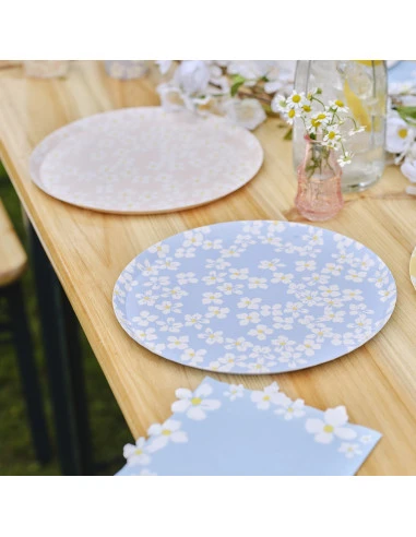Ces assiettes en carton imprimées de fleurs sont suffisamment grandes pour les utiliser en plat de service pour un buffet .
