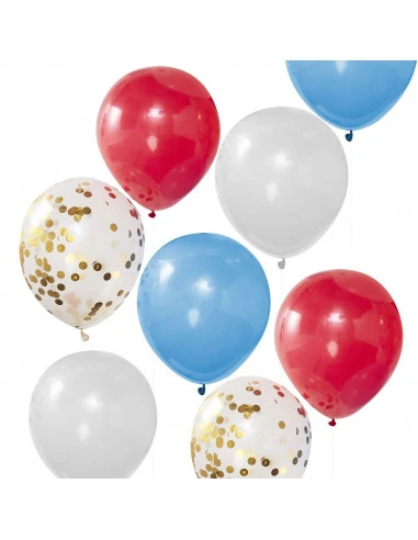 Pour la décoration de votre fête, ce pack de ballons mélange de ballons unis et de ballons transparents avec confettis dorés .