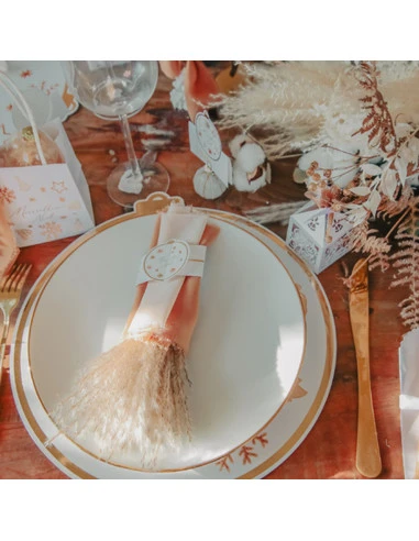Ces étiquettes en forme de Noel s’utilisent en ronds de serviettes pour une déco Noel à petit prix.