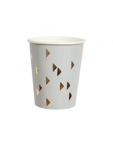 Pour la décoration d’une baby shower, baptême, anniversaire, mariage, ces gobelets chics avec triangles dorés imprimés.