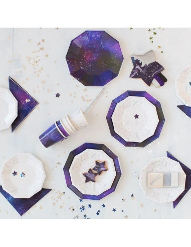 Pour la décoration de votre table de fête espace, astronaute, ces gobelets représentant la galaxie.