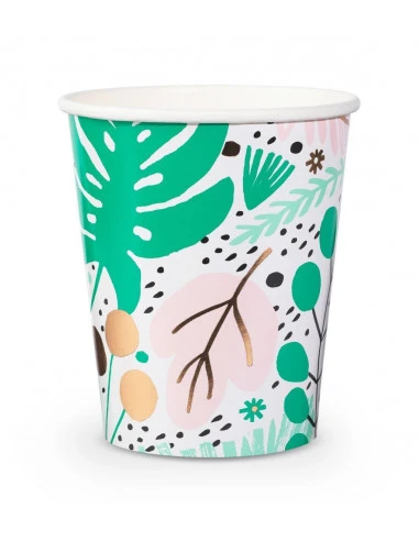 Pour la décoration de votre table de fête tropicale, ces gobelets avec feuilles de palmiers et touche dorée brillante.