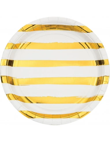 Pour la décoration de votre table de fête, ces assiettes avec des rayures irrégulières dorées brillantes .