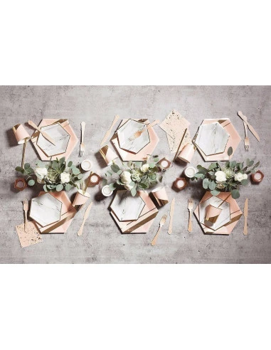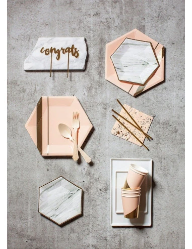 Pour la décoration de votre baby shower, baptême, anniversaire, mariage chic, ces assiettes rose pastel avec bandes dorées.
