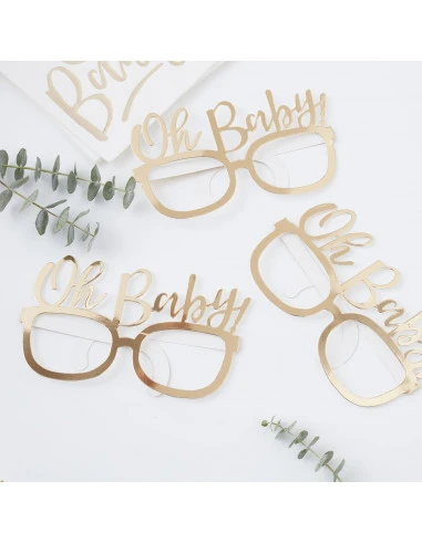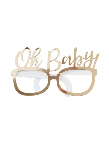 Pour des photos inoubliables de vos invités lors de votre baby shower, ces lunettes en carton doré avec écriture Oh Baby.