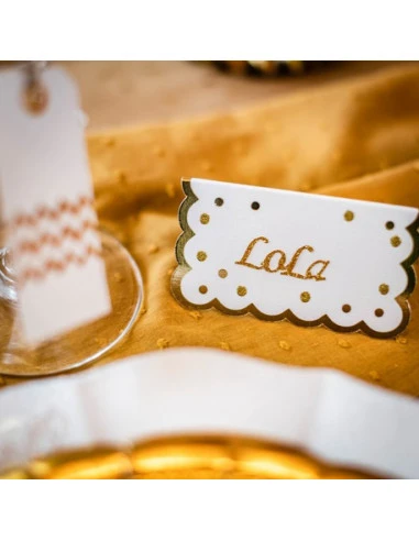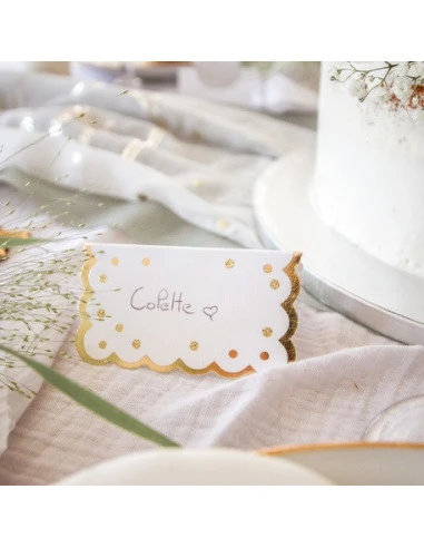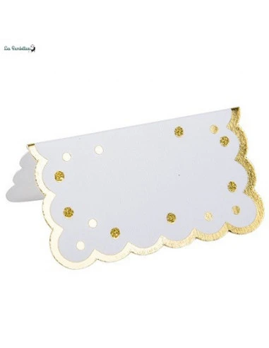 Matière : carton imprimé de pois or brillants et pois pailletés, bordure or brillant