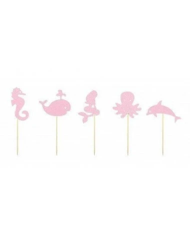 Ce pack est composé de 9 piques gateaux motifs sirène, coquillage, pieuvre, hippocampe, queue de sirène, baleine.