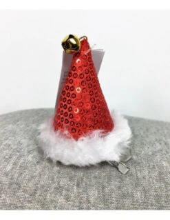 Barrette Mini Chapeau De Père Noël Sequins Rouges Fourrure Blanche