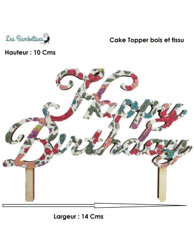 Ce cake topper Happy Birthday Liberty Fleurs sera idéal sur un gâteau d’anniversaire de petite fille ou pour une femme .