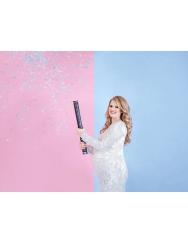 Ce canon a des confettis bleus pour révéler à vos proches que votre futur bébé est un petit garçon.