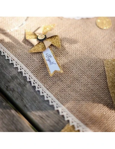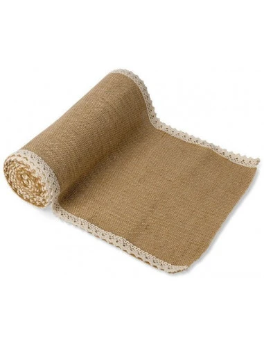 Matière : toile de jute, macramé beige ; cette toile est tissée large afin d’obtenir un effet de toile aérée.