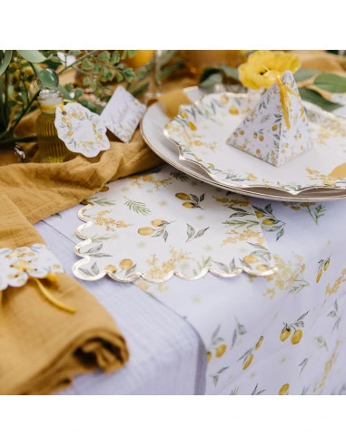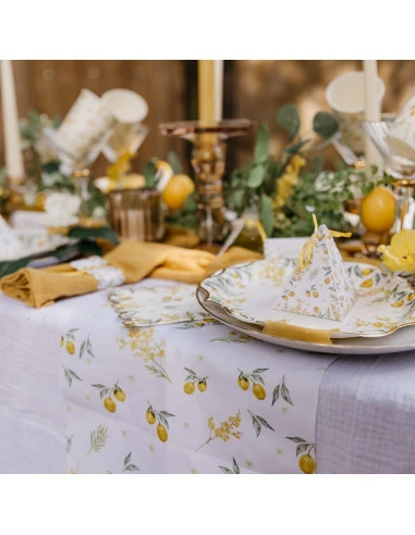 Ajoutez la vaisselle jetable citron mimosa pour avoir une décoration de table complète.