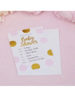 10 Invitations Baby Shower Pois Roses Et Dorés Enveloppes Blanches