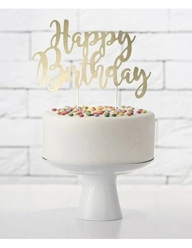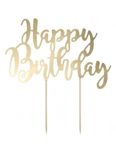Matière : carton brillant doré sur devant , blanc sur le dos du cake topper, pique bois