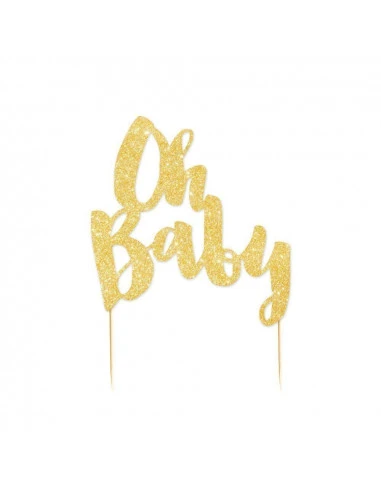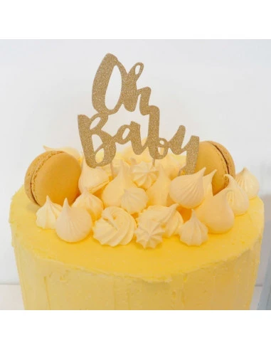 Pour décorer votre gâteau pour une décoration baby shower, pour un baptême ou fêter une naissance, ce cake topper « Oh baby » en carton pailleté .
