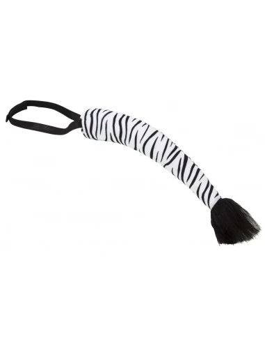 Cette queue de zèbre est maintenue à la taille par un élastique avec velcro et elle est réalisée dans un tissu imitation poil ( toucher velours ) .