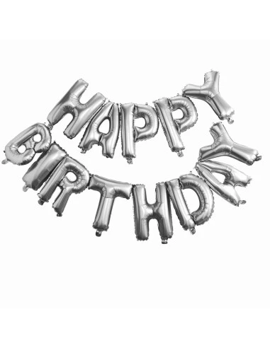 Effet garanti avec cette guirlande composée de ballons mylar argent et les lettres « Happy Birthday »