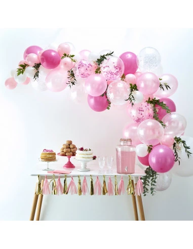 Grâce à ce kit composé de ballons roses et blancs, vous pourrez décorer une baby shower, un baptême, un anniversaire, un evjf, un mariage.