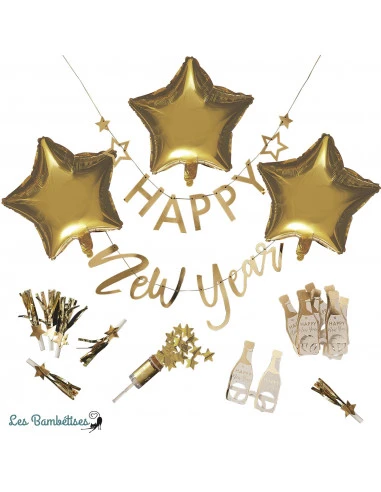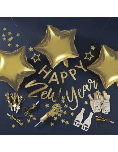 – 1 Guirlande en carton Happy New Year ficelle dorée 2 X 1.5 mètres