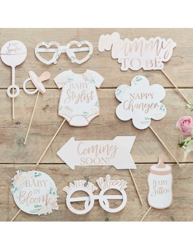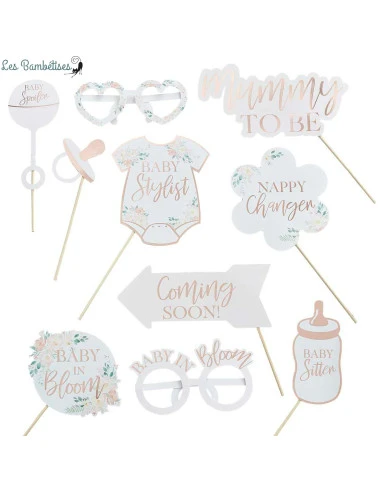 Vous allez adorer ce magnifique Kit Photobooth Baby Shower Bohème avec ses accessoires fleuris .