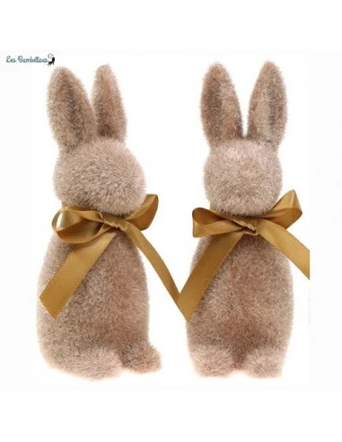 Ce lapin de Pâques flocké est couvert de poils au toucher doux et il est sera parfait dans votre décoration de printemps.