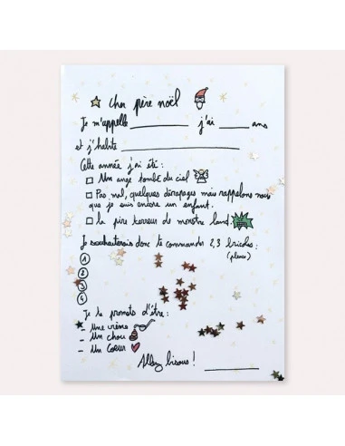La lettre pour le Père Noel que l’on gardera en souvenir parce que tellement drôle et toute faite !