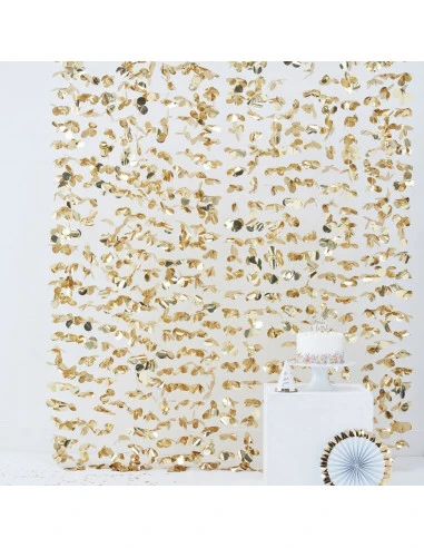 Elégant rideau avec des feuilles dorées que vous pourrez utiliser contre un mur pour un espace photo ou en déco derrière votre buffet.
